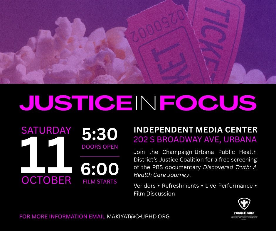 You are invited to Justice in Focus, a free community-centered event dedicated to raising awareness and fostering meaningful conversations around racial disparities.