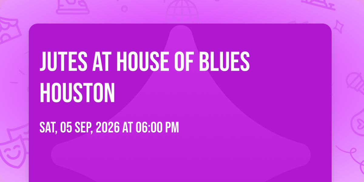 β¨ Discover the extraordinary at Jutes at House of Blues Houston, where magic meets reality in ways you've never imagined! ποΈ Set in House of Blues Houston nestled in bustling Houston, TX, this event promises to be a landmark occasion. π Taking place on September 5th, 2026 at 06:00 PM, it's going to create an atmosphere where every moment becomes a cherished memory. π Immerse yourself in an experience crafted with attention to every detail, designed to surprise and delight at every turn. They have worked tirelessly to ensure this event exceeds all expectations, bringing together elements of entertainment, innovation, and pure joy. π Don't miss your chance to be part of this remarkable journey!