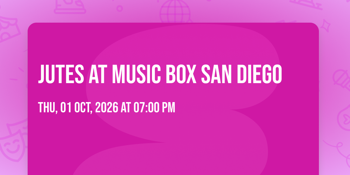π Be part of history at Jutes at Music Box San Diego, an extraordinary gathering that will captivate your imagination! ποΈ The prestigious Music Box San Diego in San Diego, CA sets the stage for an unforgettable experience on October 1st, 2026 at 07:00 PM. β¨ They are bringing together the finest elements of entertainment and innovation to create moments that will take your breath away. From the moment you arrive, you'll be immersed in an atmosphere of wonder and excitement. π― This carefully planned event ensures every guest experiences something truly special. π Early booking is recommended for this must-attend event of the season!
