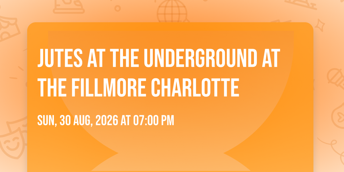 β¨ Enter a world of endless possibilities at Jutes at The Underground at The Fillmore Charlotte, where every moment tells a story! ποΈ The stunning The Underground at The Fillmore Charlotte in vibrant Charlotte, NC transforms into a realm of wonder on August 30th, 2026 at 07:00 PM. π They have crafted an experience that goes beyond the ordinary, combining elements of surprise, delight, and pure entertainment. Every detail has been thoughtfully considered to ensure your journey with us is nothing short of extraordinary. π― Join fellow adventure seekers and memory makers in this celebration of imagination and innovation. π Reserve your spot today and be part of something truly special!