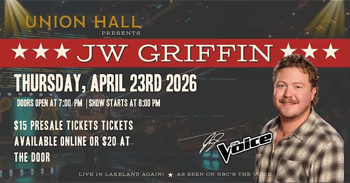 Get ready to vibe with JW Griffin, star of NBC's The Voice, performing live at Union Hall! This is your chance to experience an unforgettable show filled with amazing tunes and great energy. Don't miss out on an intimate night of music with one of today's hottest voices. Bring your friends and enjoy a fantastic evening that you'll be talking about for weeks!