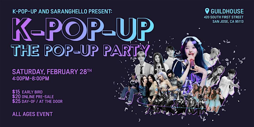 K-Pop enthusiasts unite! Join us on Saturday February 28th at 4PM - 8PM at Guildhouse for a kpop dance showcase, raffle, games, photo booth, and Random Dance Play! We will celebrate our LOVE of kpop together as we strengthen the Bay Area Kpop community.