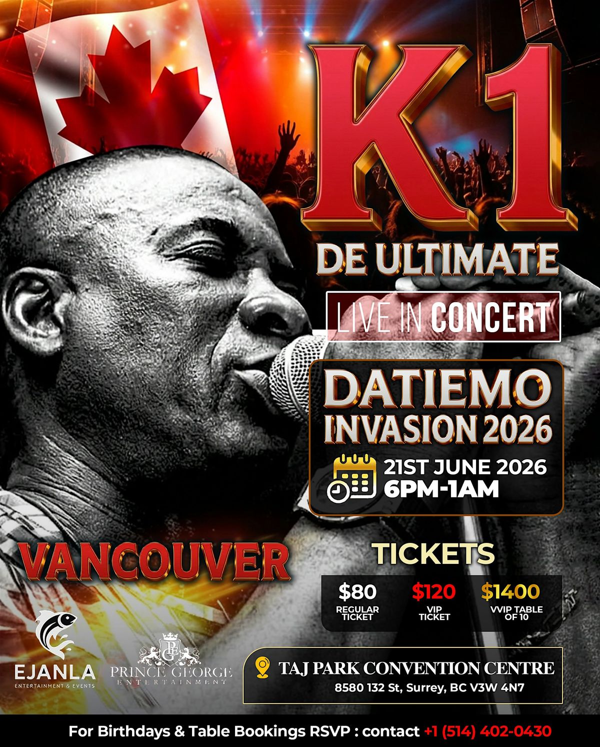 This is a historic moment for the African community in Vancouver. Experience a true legend of Fuji music live, with unmatched energy, live instrumentation, and crowd engagement that defines K1 De Ultimate’s performances worldwide.