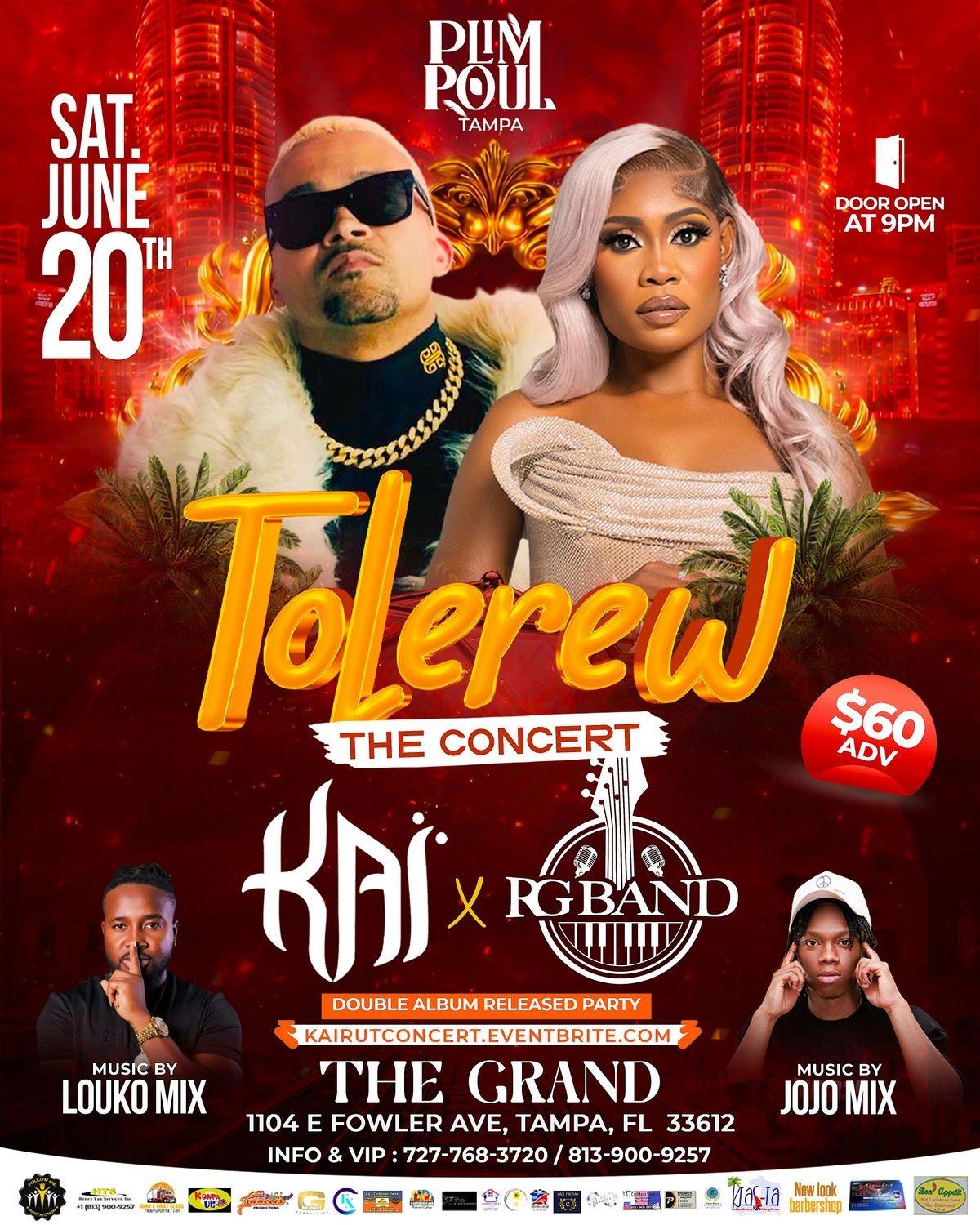 Saturday April 18TH 2026 / KAI AND RUTSHELLE LIVE IN TAMPA // TOLEREW, the concert / AT tHE GRAND // TAMPA GET READY