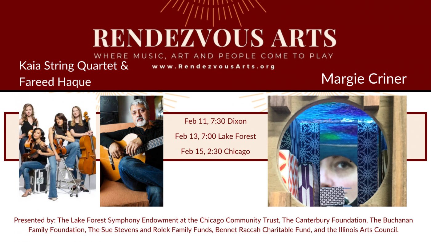 Kaia String Quartet & Fareed Haque with art by Margie Criner