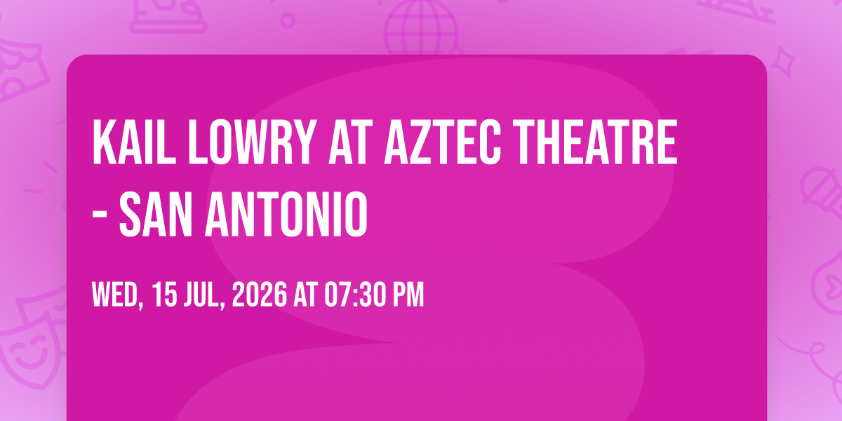 🎉 Welcome to Kail Lowry at Aztec Theatre - San Antonio, where dreams come alive and possibilities are endless! 🏛️ Join us at Aztec Theatre - San Antonio in the heart of San Antonio, TX for an event that defies expectations. 📅 On July 15th, 2026 at 07:30 PM, be part of something truly extraordinary as we bring together innovation, entertainment, and pure magic. ✨ Every aspect has been carefully designed to ensure an unforgettable experience for all our guests. Whether you're seeking adventure, inspiration, or simply a break from the ordinary, this event promises to deliver beyond your wildest dreams. 🎊 Prepare for a journey into the extraordinary!
