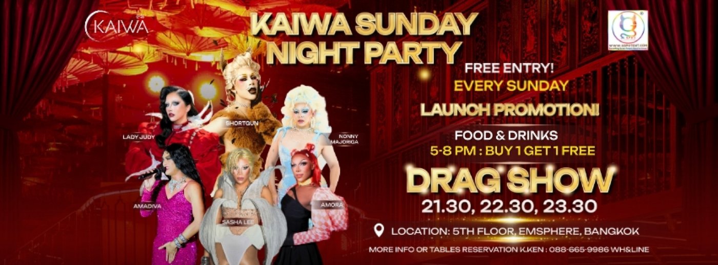 #KaiwaSundayNightParty #KaiwaBkk #DragShows #GspotEnt #SundayGaynight