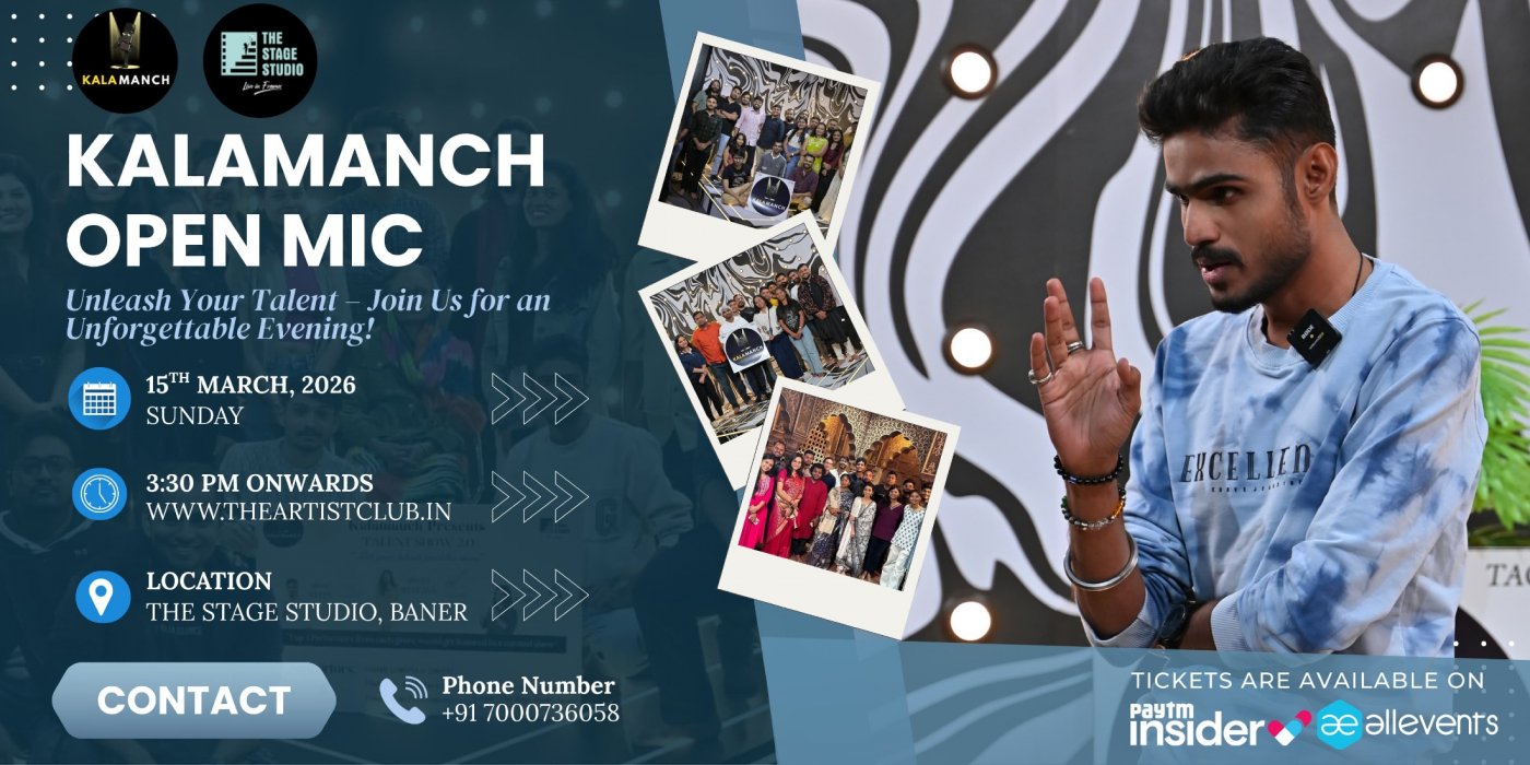 Step into the spotlight, feel the rhythm of expression, and witness the magic unfold at KALAMANCH (TAC) OPENMIC EVENT! See you at the mic!?️ #Kalamanch #KalamanchOpenMic #OpenMicPune #PuneEvents #LivePoetry #SpokenWordIndia #StorytellingNight #ArtAndExpression #PoetryCommunity #TheStageStudio #CreativePune #OpenMicVibes #ArtistsOfInstagram