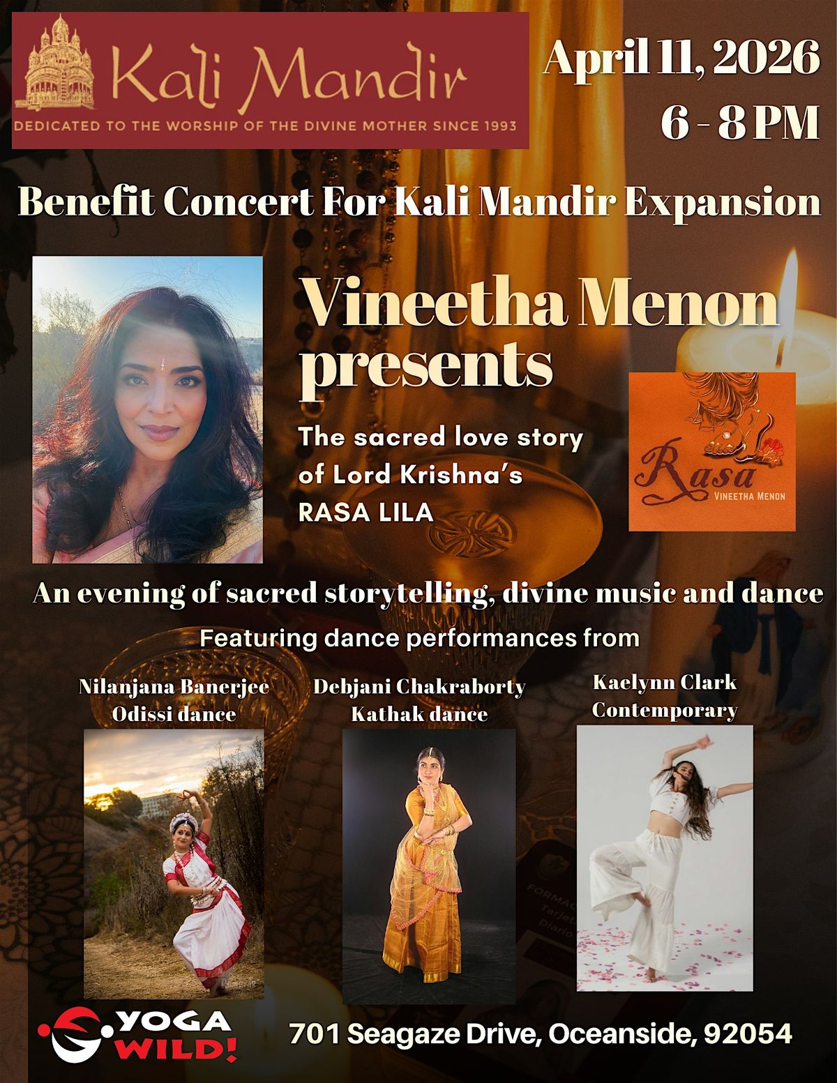 "Kali Mandir in Laguna has been a profound source of joy and solace in my life. I first shared this entire album in the blissful presence of Divine Mother Kali, long before entering the recording studio. I am deeply humbled and grateful to perform RASA in honor of Her sacred temple's expansion here in Southern California." - Vineetha Menon