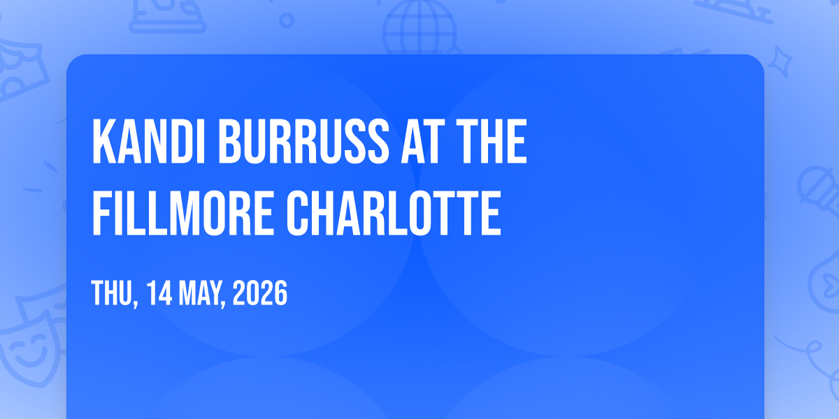 🌟 Journey into wonder at Kandi Burruss at The Fillmore Charlotte, where extraordinary experiences await around every corner! 🏛️ Set against the backdrop of The Fillmore Charlotte in dynamic Charlotte, NC, this event promises to exceed all expectations. 📅 Join us on May 14th, 2026 at 08:00 PM for a celebration that combines innovation, entertainment, and community spirit in perfect harmony. ✨ There will be an atmosphere where memories are made and stories come alive, ensuring every guest experiences something truly remarkable. 🎊 This is more than just an event; it's a journey into the extraordinary!