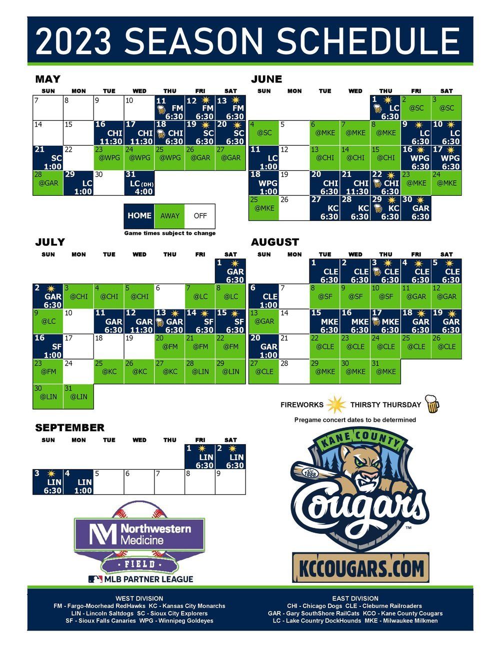 Kane County Cougars at Fargo-Moorhead RedHawks at Newman Outdoor Field