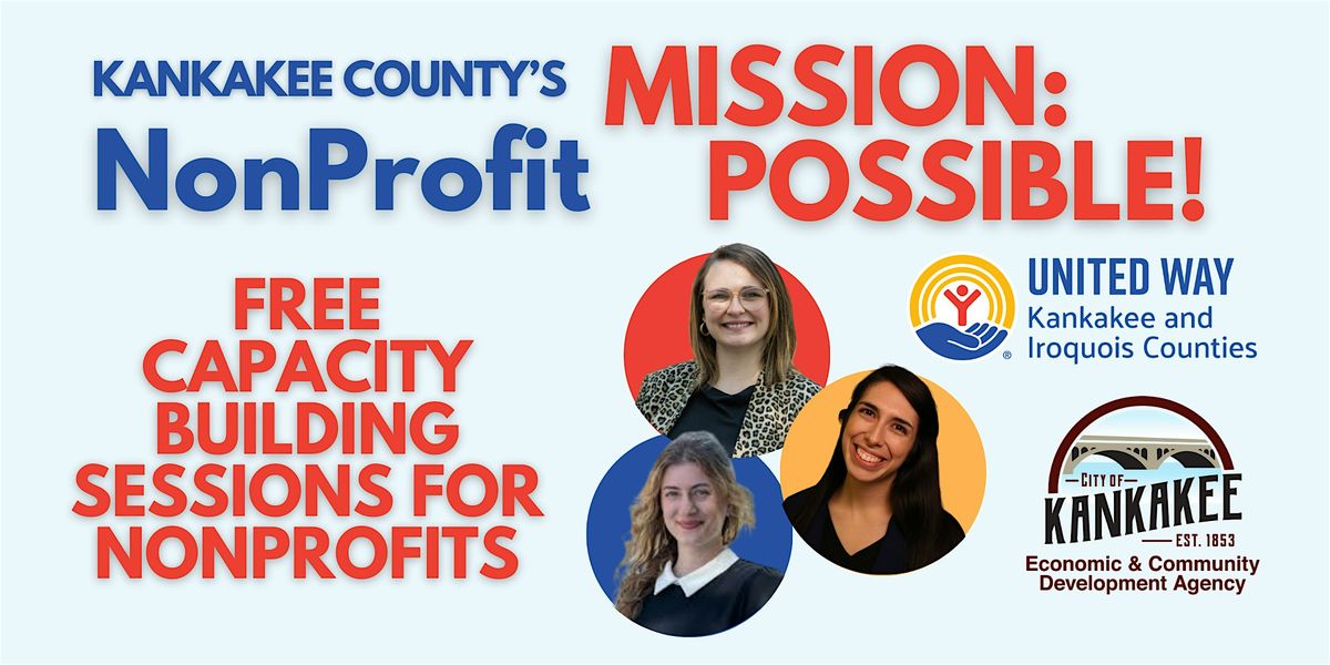 Join us for a FREE, three-part workshop series created exclusively for small-sized Kankakee County nonprofits looking to strengthen their internal operations and elevate their grantwriting success. Whether you’re led by a small staff or powered by volunteers, these sessions are designed to provide practical tools, clear guidance, and real-world strategies you can implement immediately.