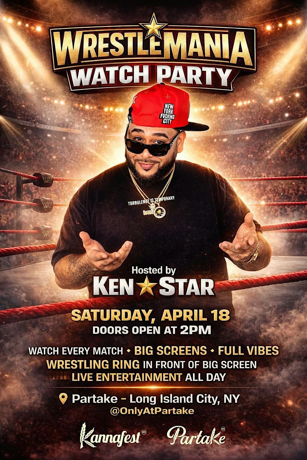 Big screens, live matches, non stop madness, hosted by Ken Star. This is how you watch WrestleMania.