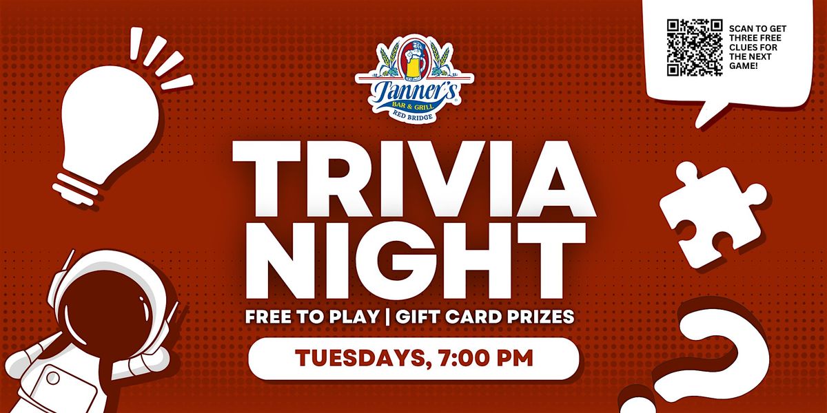 Join us for free live trivia every Tuesday at 7pm at Tanner's Bar and Grill - Red Bridge in Kansas City! Free to play, and top teams win gift card prizes!