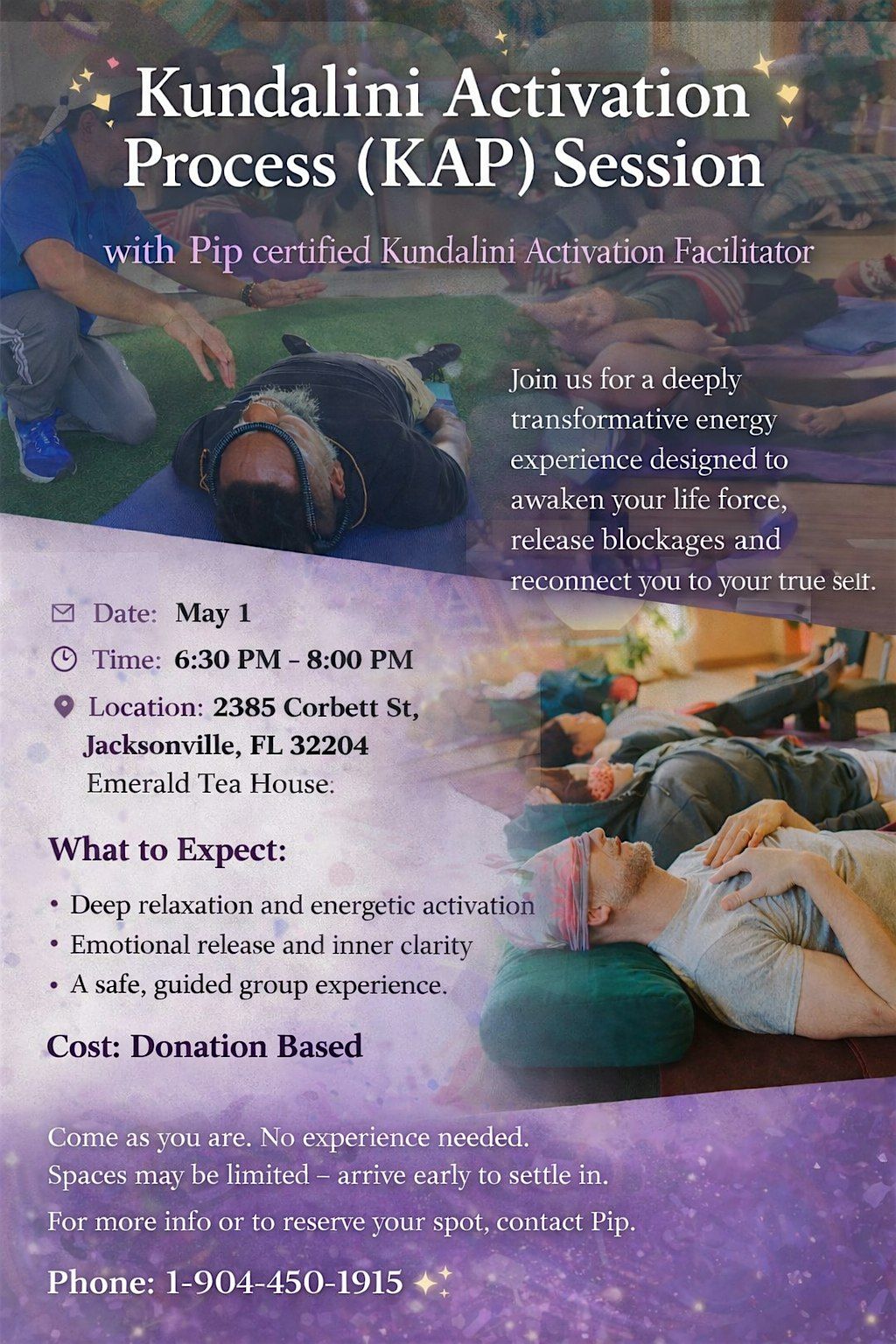 The Kundalini Activation Process (KAP) is a direct energy transmission, often facilitated by a teacher, that initiates the awakening of dormant life force energy. Participants typically lie on a mat, and the facilitator touches or presses chakra points to initiate energetic shifts, spontaneous movements, or emotional releases, resulting in a profound rewiring of the nervous system.
