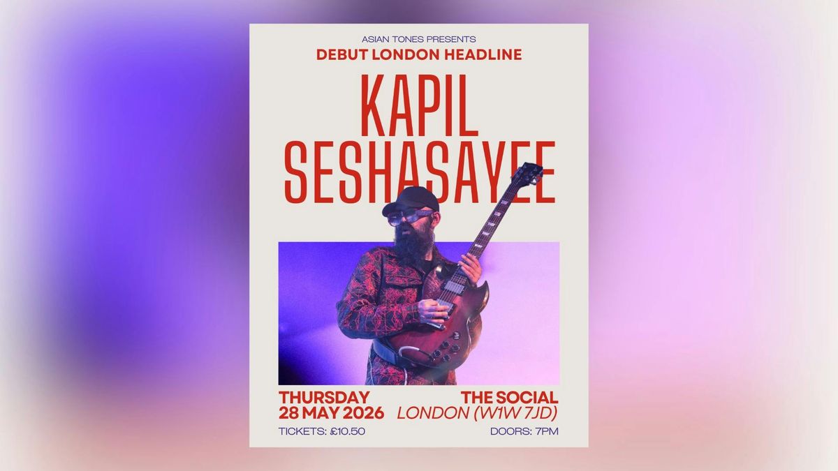 Asian Tones proudly presents: Kapil Seshasayee's debut London headline performance.Kapil Seshasayee is a British-Tamil guitarist and songwriter reshaping South Asian classical music for a new generation. Drawing from Carnatic Indian classical traditions, UK electronic music, and guitar-led club culture, his work sits somewhere between the discipline of raga and the energy of the dancefloor. Known for his distinctive use of gamakas on electric guitar, Kapil creates music that feels rooted, physical, and forward-looking - made for listeners raised between cultures.