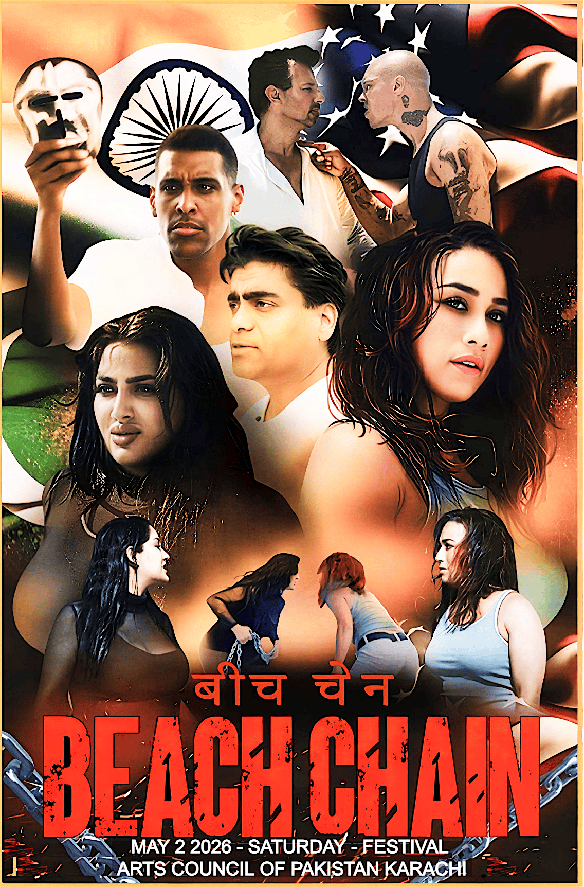 BEACH CHAIN also stars ARYAN VAID! 2x MR. INDIA winner! He is one of Bollywoods most respected actors of all time and he does not dissapoint in his role as Cage, a father and husband desprately trying to make it back home to his family. He advocates for all Indian and Pakistani people with his most fiery role of his career as he stands directly opposed former Pr*son inmate turned famous Actor, Jeremy Meeks!