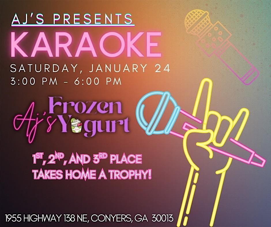 Good singers, challenged singers, it doesn't matter. Come out and enjoy a fun night of Karaoke at AJ's Frozen Yogurt. Don't miss your chance to win a first, second, or third place trophy.