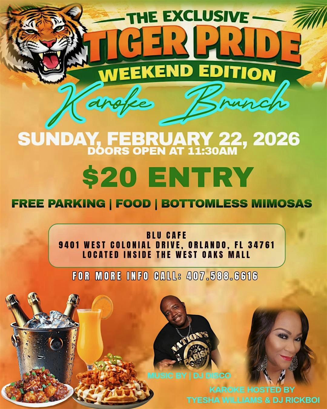 Get ready for the most vibrant brunch party of Tiger Pride Weekend. Join us on Sunday, February 22, 2026, for an unforgettable Karaoke Brunch filled with great vibes, amazing food, and endless fun.