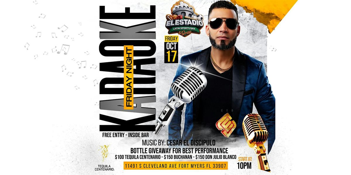 Join us for an unforgettable Friday Night Karaoke experience at El Estadio Latin Sports Bar & Grill! Show off your singing skills and compete for exciting bottle giveaways for the best performance.
