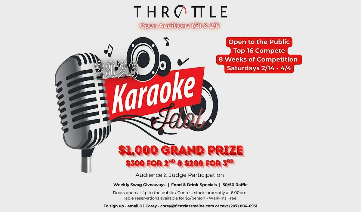 GRAND PRIZE: The winner of the Karaoke Idol Contest will receive a check in the amount of $1000.00, a Trophy & the title of “KARAOKE IDOL 2026”