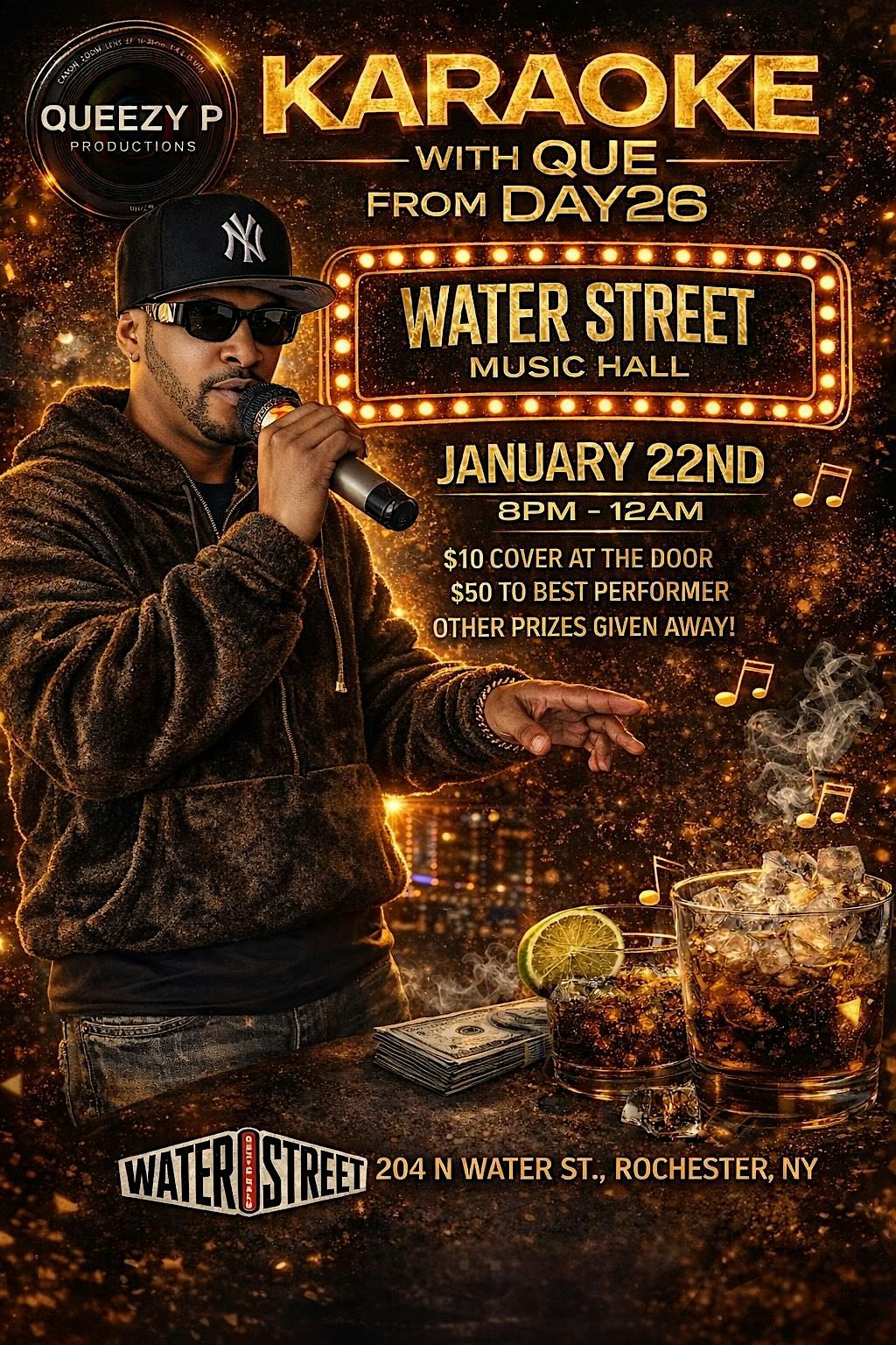 The Karaoke Idol Series is a multi-date singing competition designed to build recurring audience traffic, showcase local talent, promote cross-event attendance, and culminate in a high-energy Finale featuring an appearance by Que from Day26. All events take place at Water Street Music Hall.