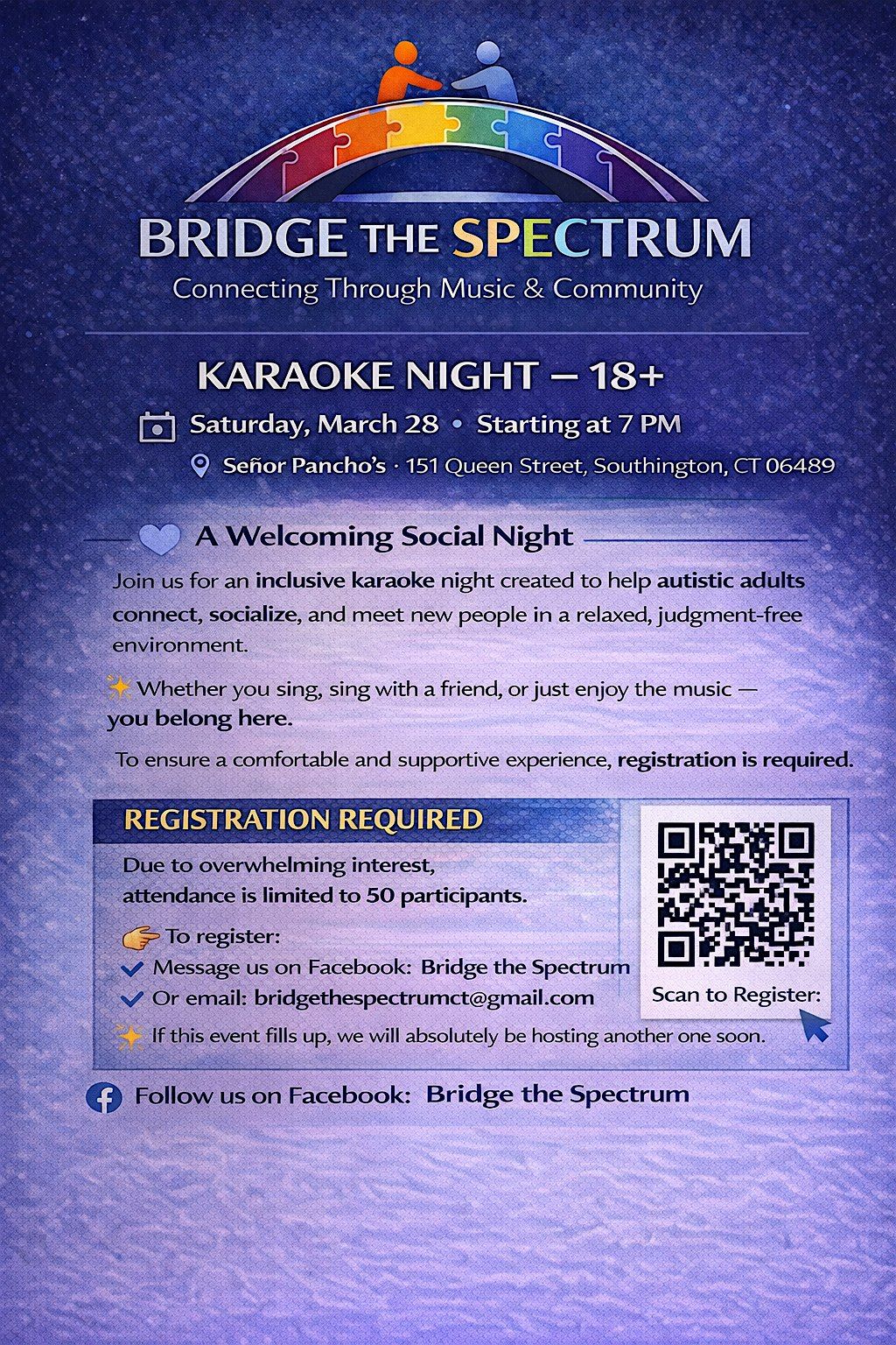 Bridge the Spectrum invites autistic adults to a fun, relaxed karaoke social designed to encourage connection, confidence, and community.