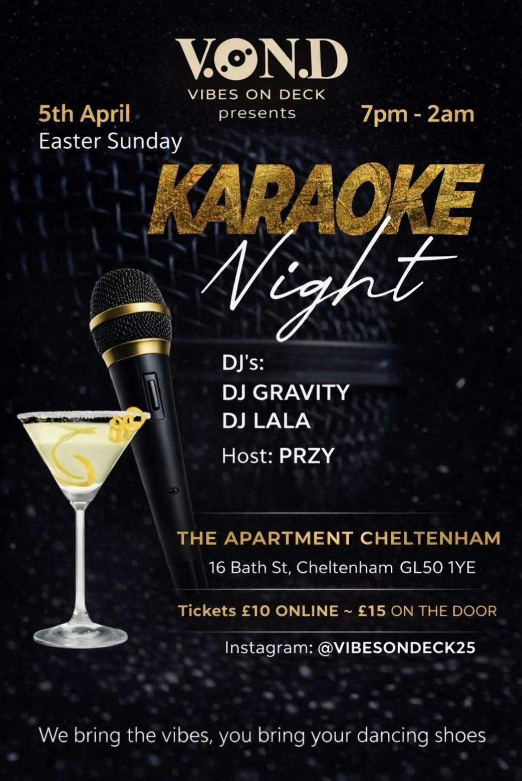 🎤 VIBES ON DECK PRESENTS: KARAOKE NIGHT 🎶This Easter Sunday, we’re bringing you a night full of vibes, energy, and unforgettable moments at The Apartment Cheltenham.