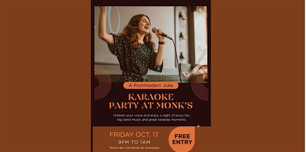 Get ready to sing your heart out and show off your vocal skills at the Karaoke Party At Monk’s hosted by Carlos Coleman 10/17/25 9P No CoverAbout this Event