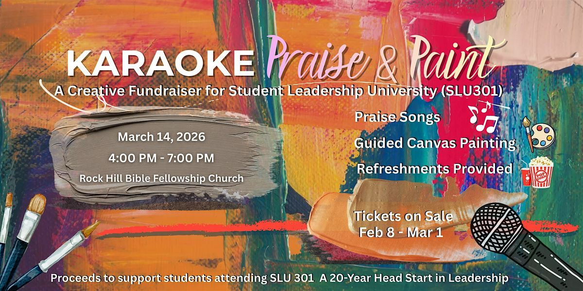 Join us for a joyful and creative evening at Karaoke Praise & Paint, a faith-filled fundraiser supporting students attending Student Leadership University (SLU) 301 this summer.