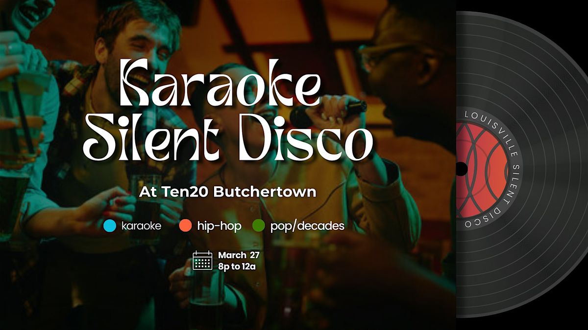 Join us at Ten20 Butchertown on March 27th for an incredible night of singing and dancing! From 8-12, we've got two channels lined up with the best tracks from the worlds of pop, hip-hop, and decades. Then, on the third channel, tune in to hear your friends belt their hearts out to any and every song you can imagine! Your friends at Louisville Silent Disco are primed and ready to make this hybrid disco/karaoke night a massive success. All we need is you!