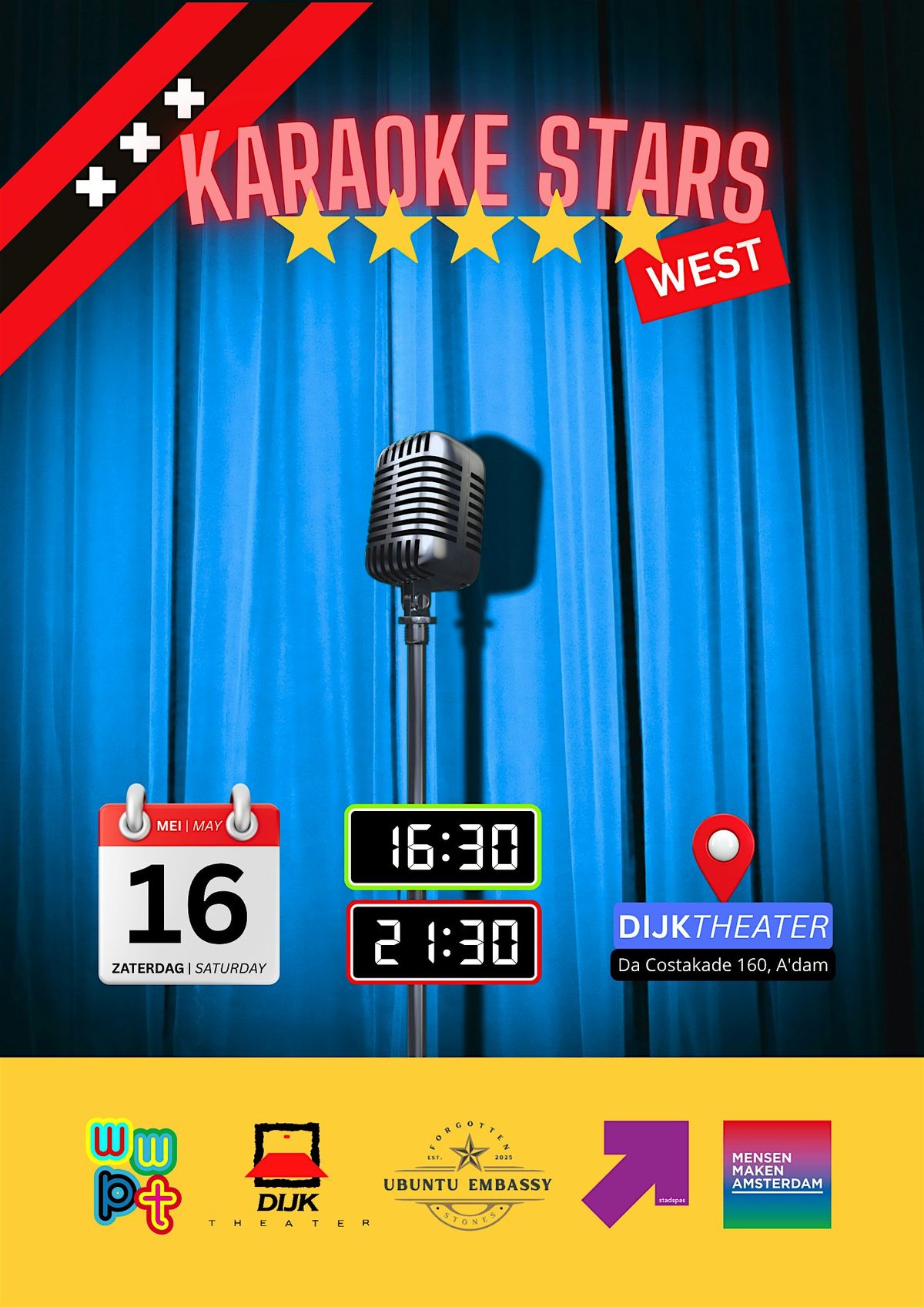 Karaoke Stars is het leukste karaoke-evenement in jouw buurt! Na twee super-geslaagde edities in Amsterdam Nieuw-West kon een vervolg niet uitblijven. Deze lente gaan we weer helemaal los en dit keer vindt Karaoke Stars plaats in het Dijktheater in Wwpt Tetterode in Amsterdam West!