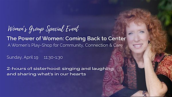 Join musician, singer, and spiritual teacher Karen Drucker for a free women's workshop of music, honest conversation, and real community. Through singing, sharing, and simple tools for self-care, you'll leave feeling more like yourself. Come tired. Leave restored. Sunday, April 19, 11:30am at Unity Palo Alto.