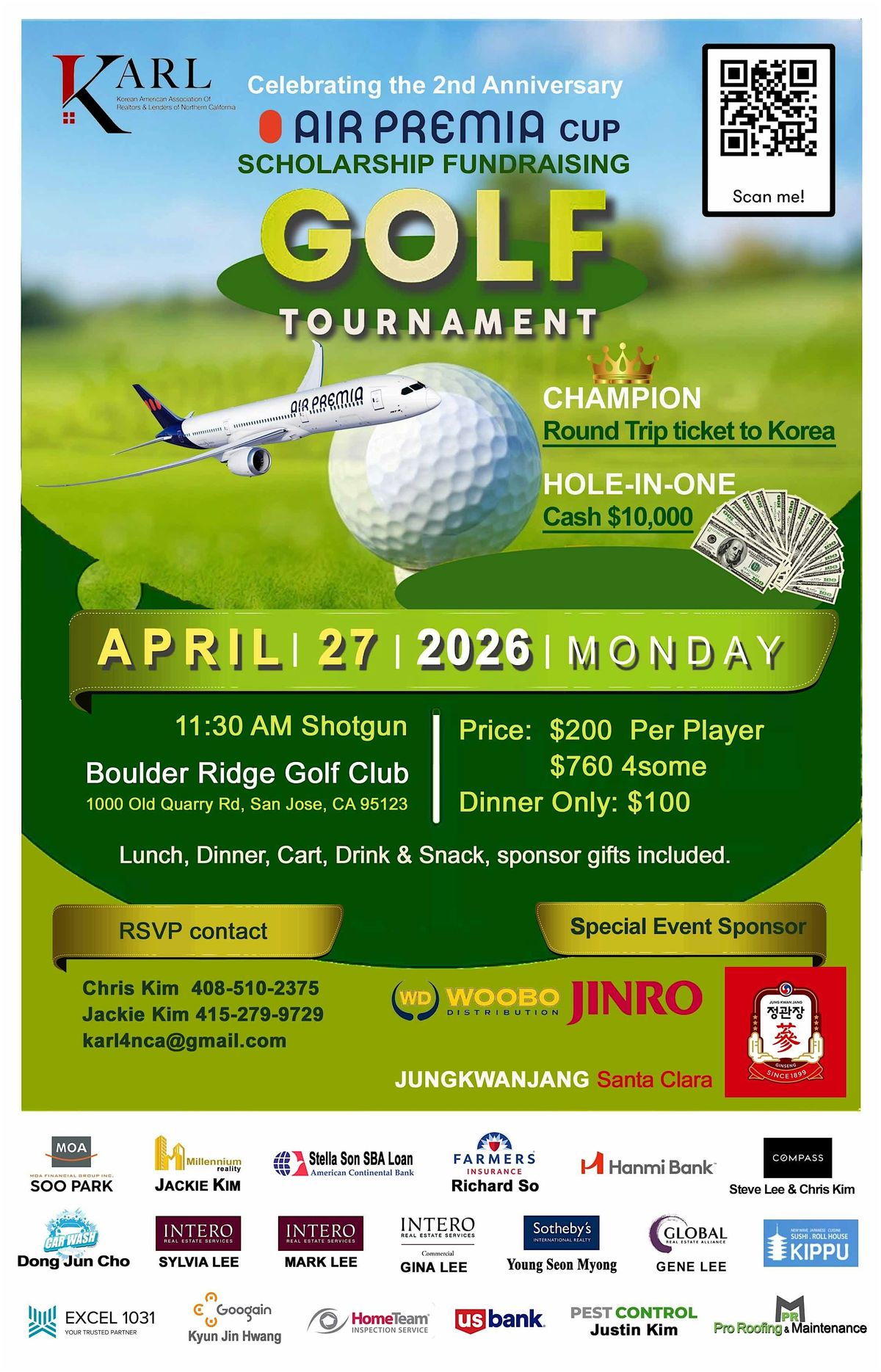 KARL Golf Tournament coming on April 27th, Monday at Boulder Ridge Golf Club, San Jose