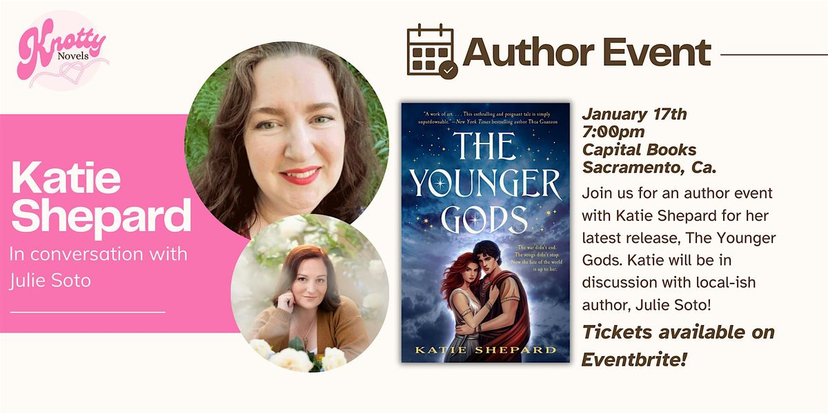 Join us Saturday, January 17th for an author event with Katie Shepard to celebrate her new fantasy release, The Younger Gods. Katie will be in discussion with local-ish author and store favorite, Julie Soto.