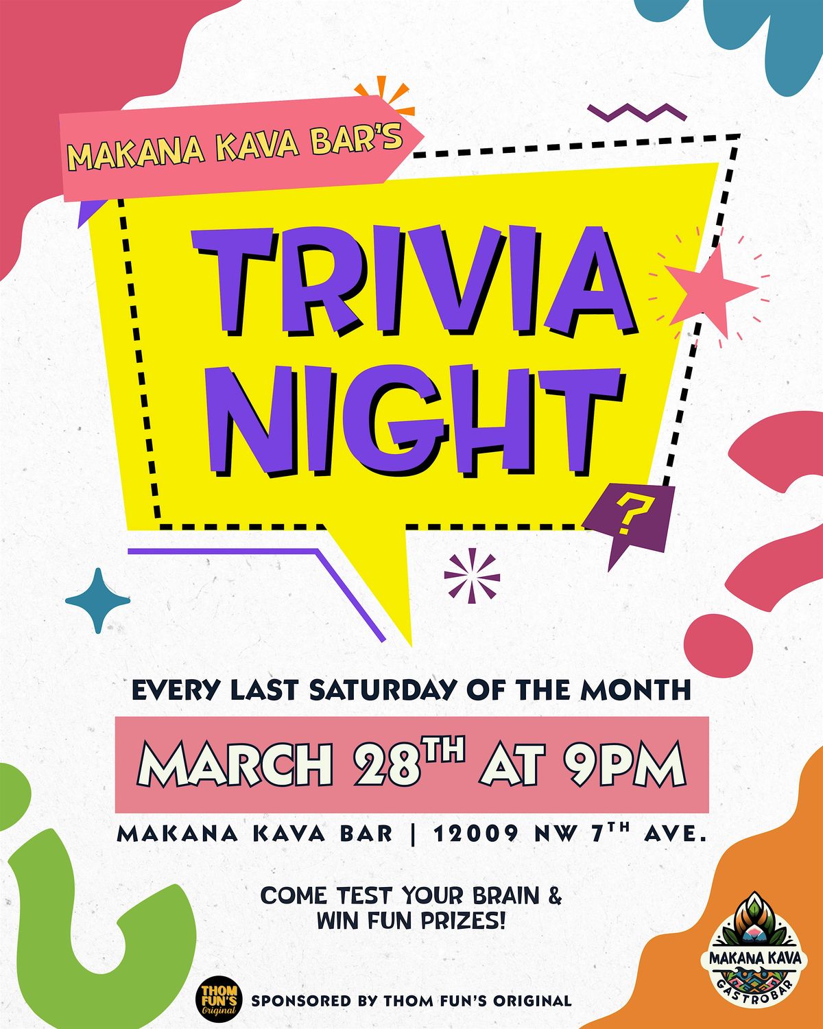 Think you’ve got what it takes to be the trivia champion? Join us for Trivia Night at Makana Kava Bar every last Saturday of the month at 9PM!