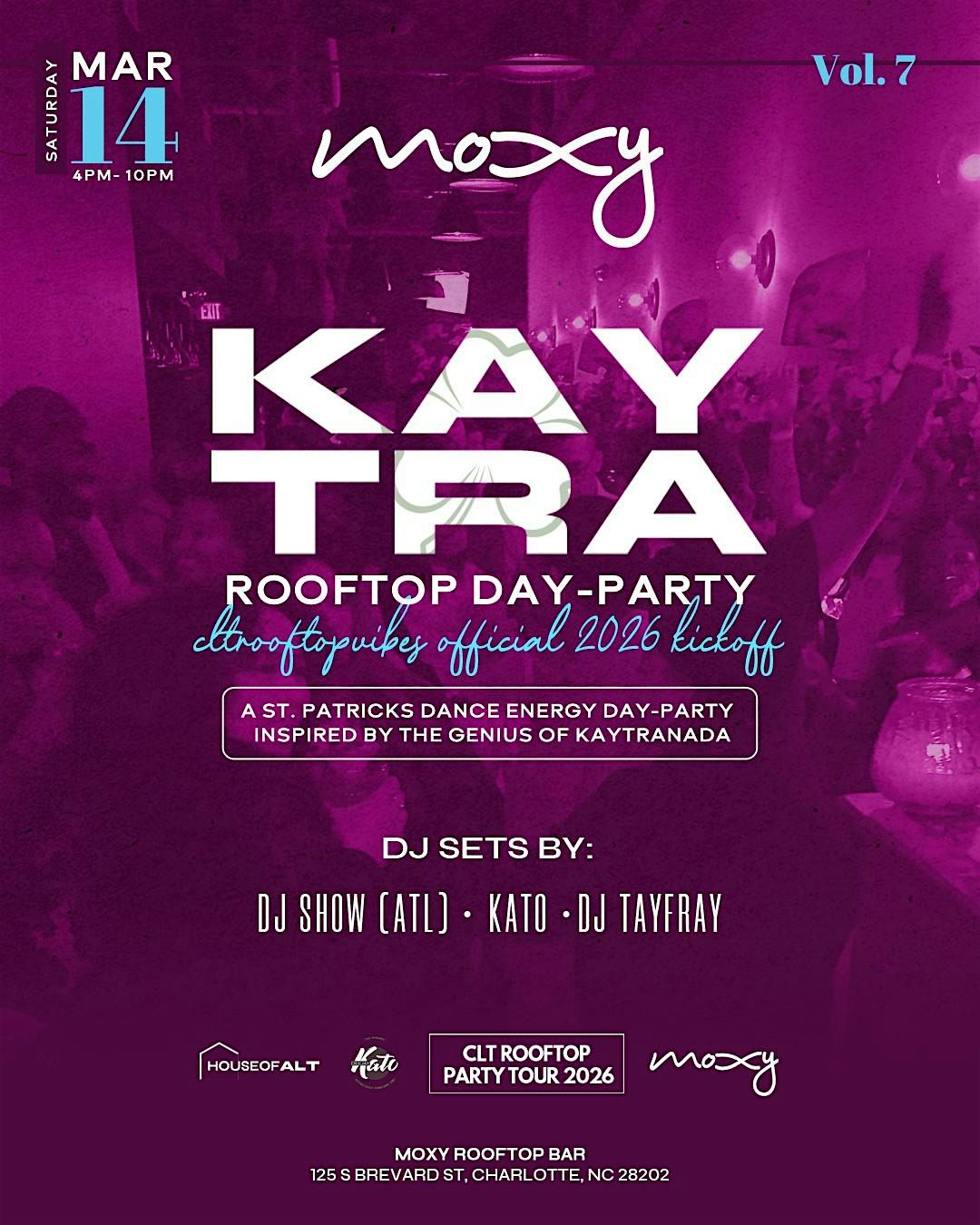 We're taking our popular Kaytranada inspired dance party to Moxy Rooftop! Join us for a day-party of pure dance energy happening Saturday, March 14 during St. Patrick's weekend! It's the official kick-off of season 3 of cltrooftopvibes tour!