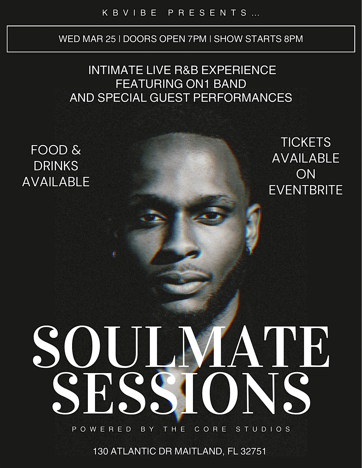 Soulmate Sessions is an intimate live R&B experience curated by KBVibe, bringing together original music, soulful performances, and a live band in a lounge-style atmosphere.This special evening will feature performances From $hadDaCaMillion, 6each, Rashad and many more talented R&B artists performing their original music backed by ON1 Band, creating a live concert experience that blends raw vocals, musicianship, and authentic storytelling.Guests can expect a night of smooth vibes, powerful live performances, and a setting designed for music lovers who appreciate real R&B, and even Latin-inspired R&B, Bringing a unique flavor to the night. Food and drinks will be available, and the atmosphere will be set with lounge seating and a relaxed environment perfect for enjoying great music and connecting with others. Come experience Soulmate Sessions where live music, creativity, and community come together. Powered by The Core Studios.