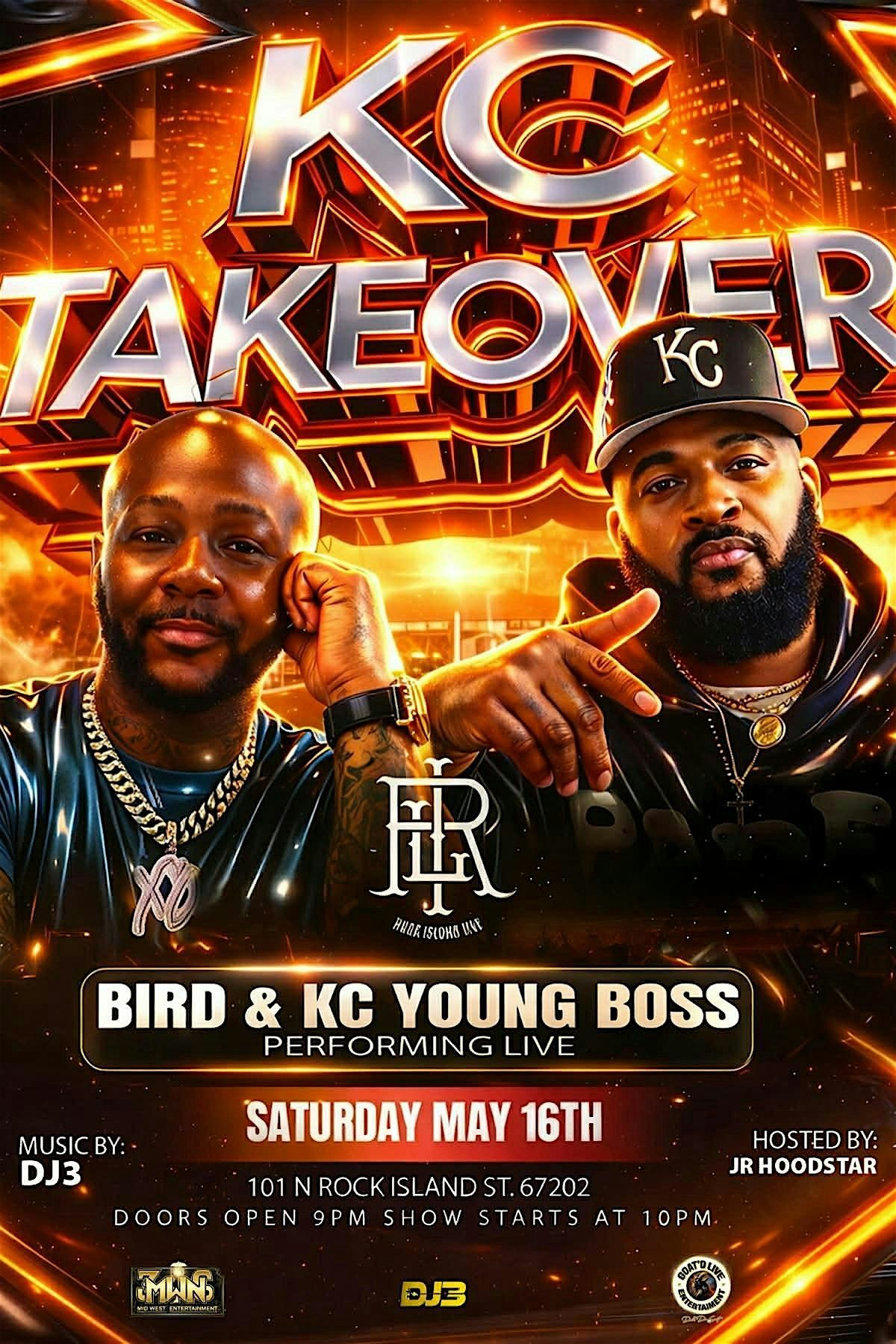 Get ready for an epic in-person event like no other! KC Take Over is all about lit Featuring Kansas City Rappers Bird & Kc Young Boss and hosted by KC own JRHoodStar. The music is brought to you by DJ3 and DJ All the static.