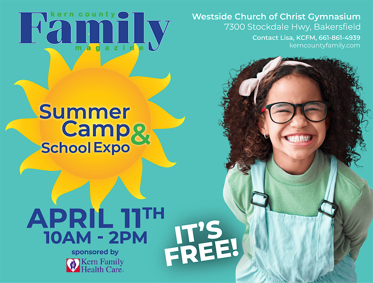 Kern County Family Magazine (KCFM) is excited to announce that our annual Summer Camp & School Expo will return on Saturday, April 11, 2026, from 10:00 a.m. to 2:00 p.m.