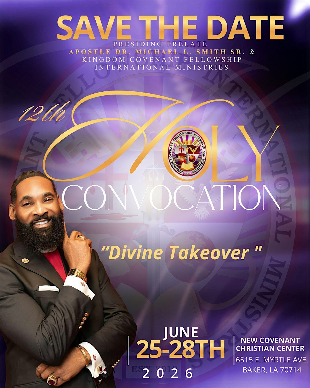 Join us for the 12th Annual KCFIM Holy Convocation, Thursday, June 25th through Sunday, June 28th. This sacred gathering is a time of impartation, renewal, and alignment as we seek God together under the theme #DivineTakeover.