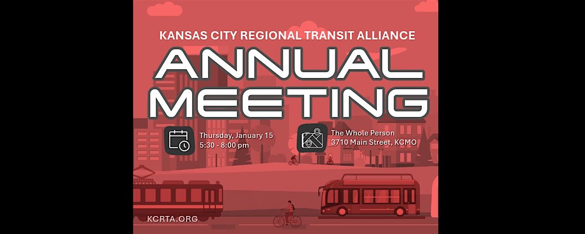 Join KCRTA members and transit advocates to celebrate the election of a new board, present the Jared Miller Transit Advocate of the Year Award, and welcome the new year.