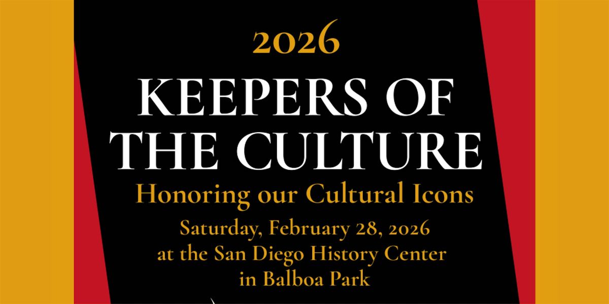 On Saturday, February 28, 2026 from 5:00pm–7:30pm the San Diego African American Museum of Fine Art will honor it's 2026 Keepers of the Culture recipients. We are pleased to collaborate with the San Diego History Center as we honor true cultural icons.