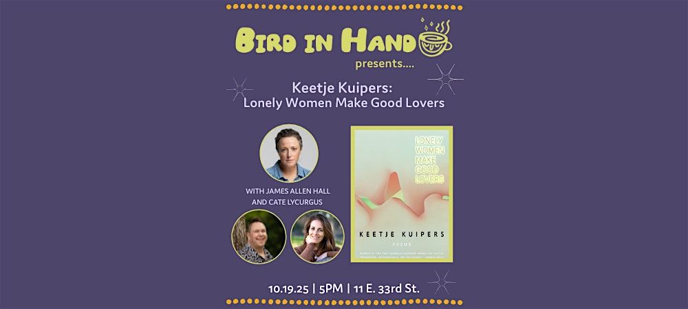 Come on out to Bird in Hand to celebrate Keetje Kuipers' new poetry collection with a festive reading! James Allen Hall and Cate Lycurgus will join Kuipers for a night of poems in the spirit of her new collection, Lonely Women Make Good Lovers-- a daring, sexy, embodied, earthy book of love poems.