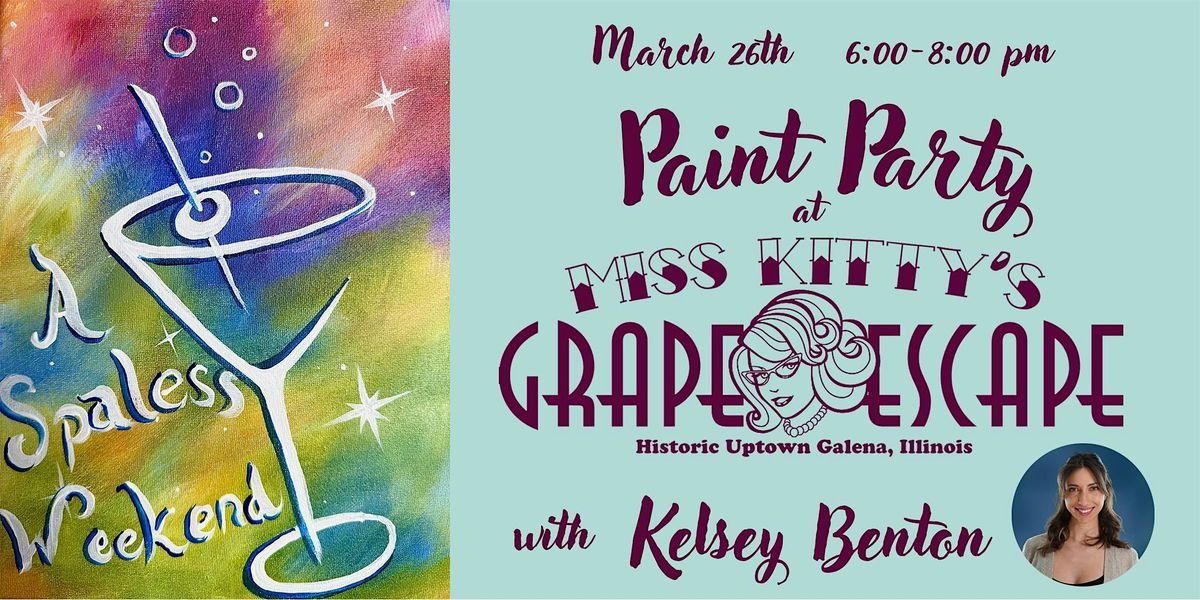 Come join us for a fun and creative paint party at The Grape Escape in Galena, IL! Whether you're an experienced artist or just looking to have a good time, this event is perfect for everyone. Unleash your inner artist while Kelsey guides you step-by-step to create your masterpiece! No pressure, just pure fun! Don't miss out on this fantastic opportunity to socialize, relax, and create something beautiful while enjoying a fine cocktail! See you there!