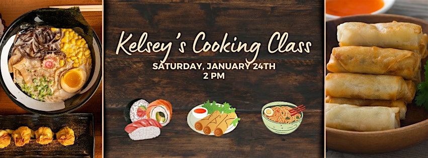 Ready to learn a new skill?! Kelsey and the kitchen staff will teach you how to make an Asian inspired meal including egg rolls, wontons, ramen and sushi. Tickets include all ingredients and supplies to prep and cook the menu, written and verbal instructions, one drink and a ton of fun ;)