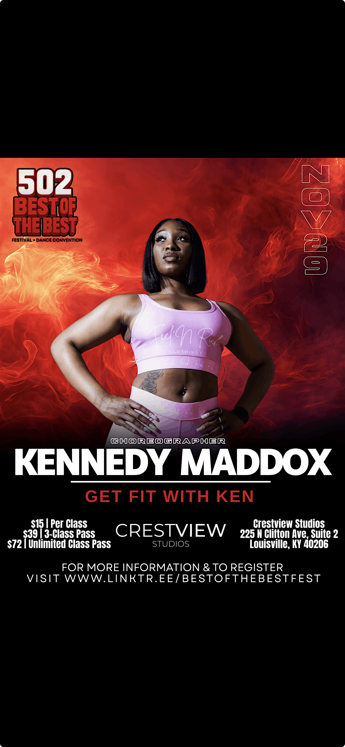 Join us Saturday November 29th starting at 11am for the Dance Convention! part 1 of the two day festival! The Convention will feature a full day of training and masterclasses led by some of Louisville’s Best Of The Best choreographers. Styles Including HipHop, Majorette, Vogue, Heels & More!
