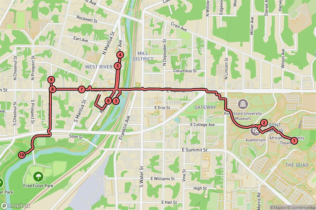 - Stops: 10 captivating landmarks including Kent Free Library, Masonic Temple (Kent, Ohio), Kent Industrial District