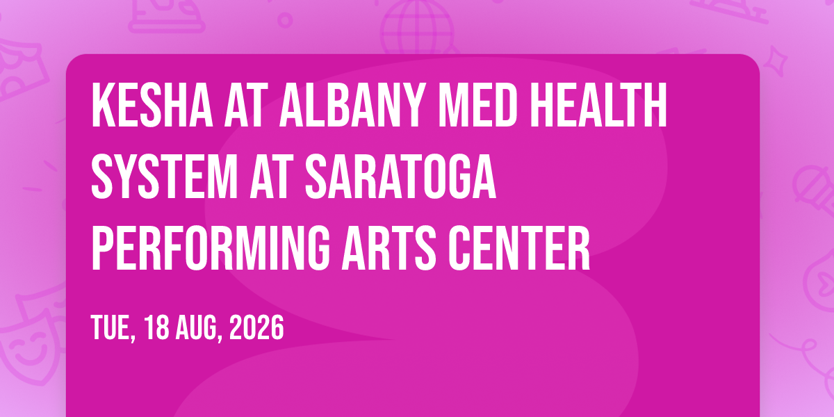 🎉 Prepare to be amazed at Kesha at Albany Med Health System at Saratoga Performing Arts Center, the most anticipated gathering of the season! 🌟 Set against the stunning backdrop of Albany Med Health System at Saratoga Performing Arts Center in vibrant Saratoga Springs, NY, this event promises to redefine your expectations. 📅 Mark your calendars for August 18th, 2026 at 07:00 PM and get ready to immerse yourself in an atmosphere of wonder and excitement. ✨ From the moment you arrive, you'll be transported into a world where memories are made and stories come alive. They have crafted an experience that perfectly harmonizes entertainment, innovation, and community spirit. 🌈 Join us as we create moments that will be discussed for years!