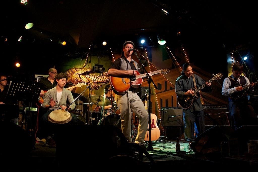 Kev Gray and The Gravy Train are an award-winning international multi-genre band playing classic bossa-nova, blues, gospel, folk and country on a bed of modern day themes. Based half of the year in Tokyo, the band tours the rest of the time, performing in places such as The Bitter End,NYC; Printers Alley, Nashville, and Sun Studios, Memphis.